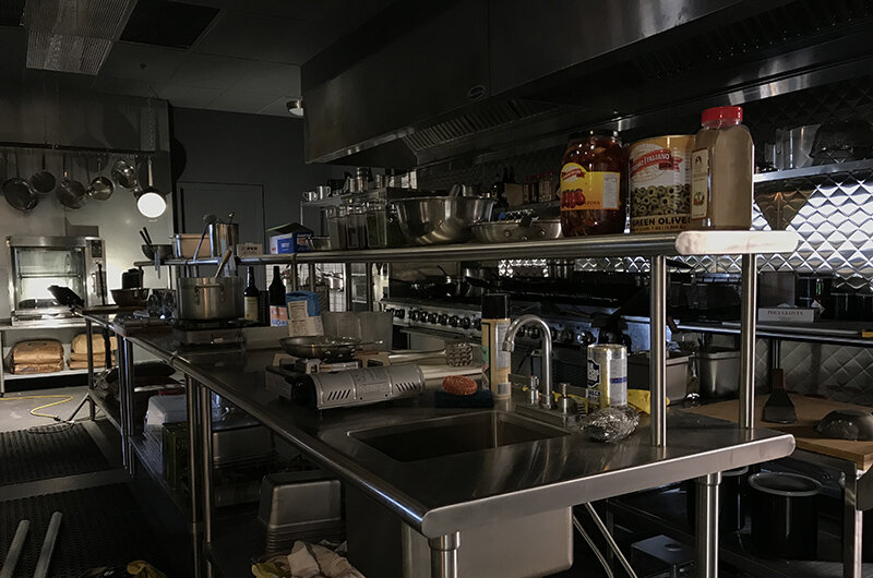 Black market tech and weapons dealer Sonny Burch [Walt Goggins] uses his high-end restaurant as his negotiating and hand-off space. This is where Wasp meets Ghost, and wow! Gang Boss Ken Bryant, oversaw the dressing of the big Restaurant Kitchen set, which features one of the most dynamic action sequences of the film. In preparation, we researched the details of a lot of restaurant kitchens, to try to determine which elements would best serve the action beats. Since so much of the action took place with a miniature Wasp doing battle against the bad guys, we had to shoot everything twice...with sections of the dressing cut apart to accommodate a Macro Photography Unit.