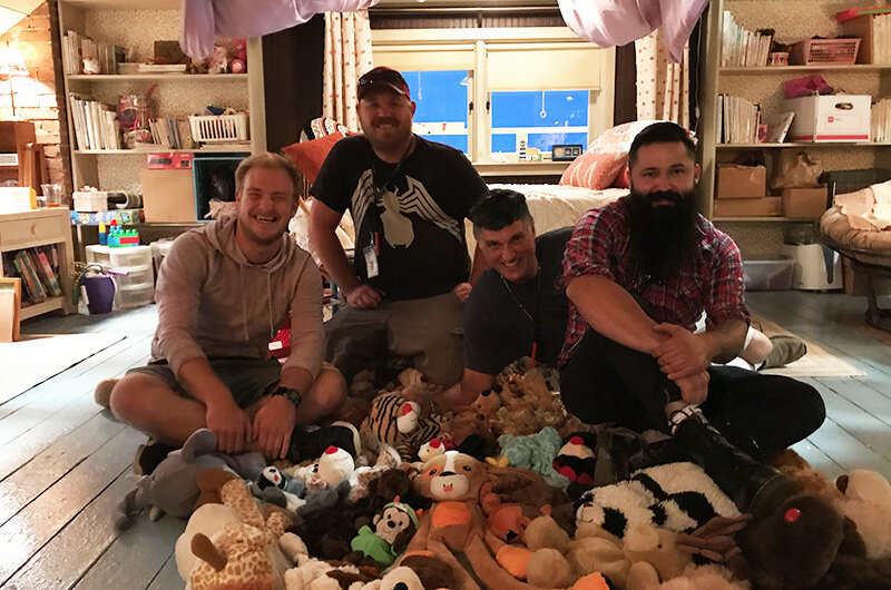 “One of my favorite features was this big plush throw constructed of conjoined stuffed animals. I’d had the idea for a while and had described it to my Drapery/ Upholstery Foreman, Jory Alvarado, who likes a good challenge. Jory bought the large assortment of toy animals, removed a portion of the stuffing to help flatten the overall surface, and then worked with a seamstress to join all the pieces together.