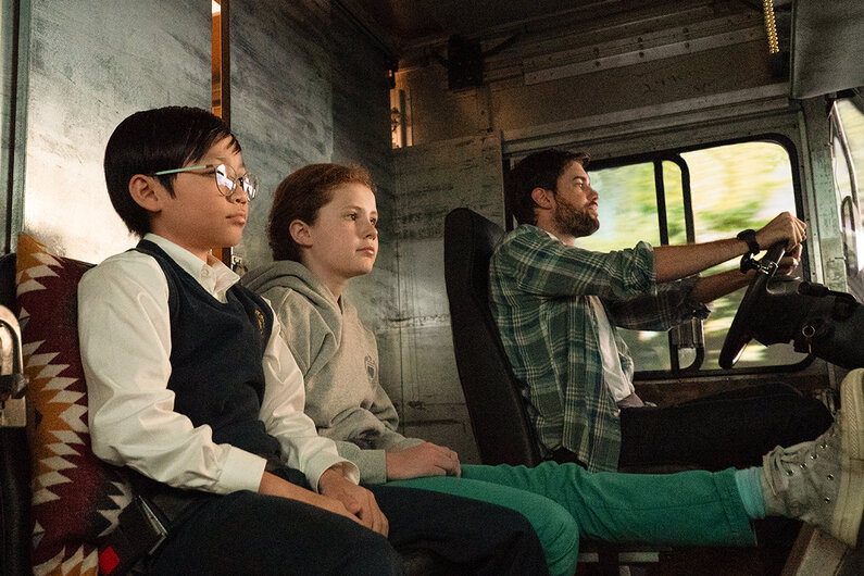 Bridwell’s Emporium for Lost Animals. The green-and-white striped tent compound where Bridwell cares for his lost animals is an inviting place where the rules of physics don’t necessarily apply. Photo by K.C. Bailey ©2021 Paramount Pictures