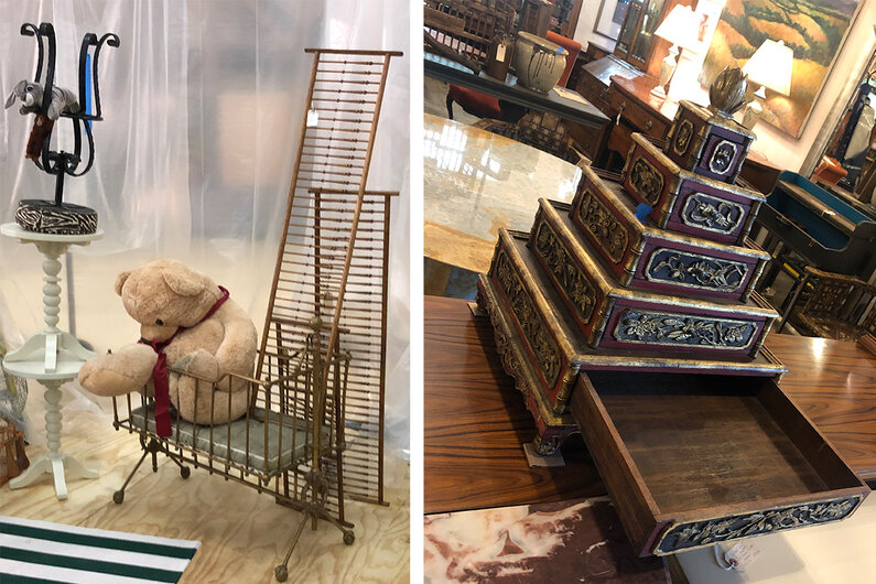 “It was fun looking for antiques for the inside of the tent that were visually interesting and could accommodate some sort of animal, whether it was a guinea pig, a corgi, St. Bernard, pony, a sloth, or a snake. We even had the biggest fish tank I’ve ever used on a set and had a fish wrangler!!! LOL. And the Corgi in the Victorian cradle is another favorite!”
