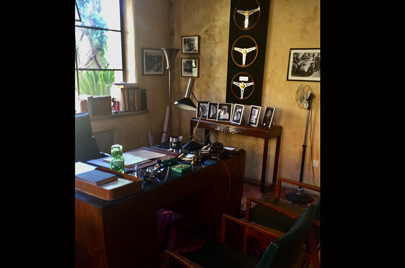 Our research dictated that a side table be dressed with photographs of Scuderia Ferrari drivers who lost their lives driving for this organization. Alberto Ascari, Luigi Musso, Wolfgang Von Trips and others were memorialized in this set.