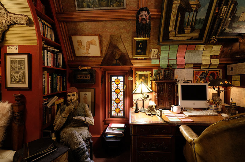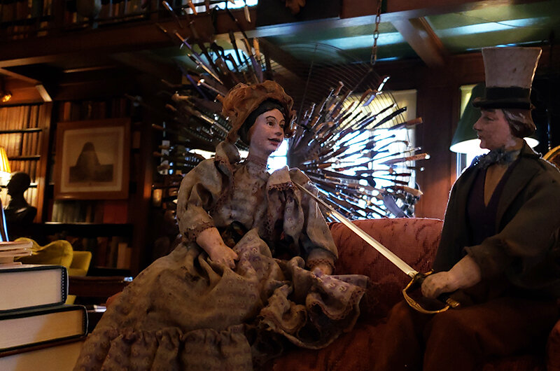 Puppets and Automatons are also a reoccurring theme in the dressing of KNIVES OUT. We were fortunate to use the work of artist Tom Haney, who creates contemporary mechanical figures...”