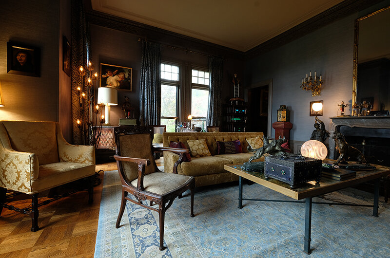Thank you Riki Lindhome! Everything with the look of KNIVES OUT is about the details and layers. Just like a good mystery, the more you look and explore an object, the deeper the mystery becomes. The owl chairs are from Newel, and I have wanted to find the right spot for them for years.