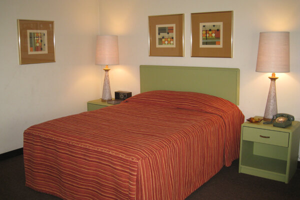 Lamps were significant accessories. “For the three contiguous rooms at the Florida motel, we ended up with a pair of lamps from Sony, a pair from Universal and a pair from Practical Props…all matching. How incredible is that? Practical Props was a perfect resource for lighting on this film…Warners Bros. and Universal as well. We found some really great pieces at each, and then shaded almost every lamp in the film ourselves.”