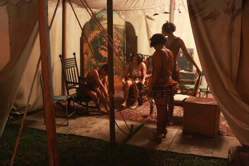 Georgia tent show... “We started the film shoot with the Georgia tent. That’s when we knew we had something incredible. The audience was excited, it was the first time we saw Viola Davis in costume and makeup, the atmosphere was charged.” – Set Decorator Diana Stoughton. Viola Davis as Ma Rainey. Photo by David Lee ©2020 Netflix.