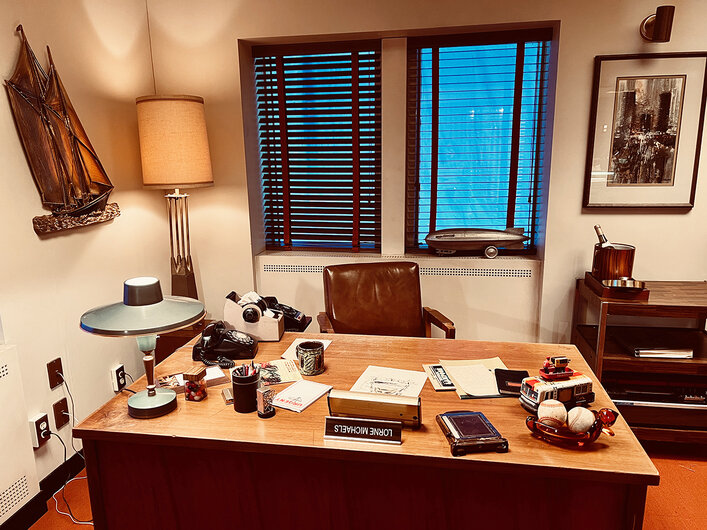Lorne’s 9th floor office. “ I was told by Lorne’s assistant that he has a bowl of popcorn in his office every day.”  Note: The room looks out over the audience seating  seen the photo above. Photo by Claudia Bonfe © 2024 CTMG, Inc. All Rights Reserved.