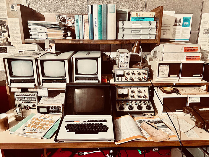 We had 28 monitors in our control room, all broadcast CRT style, in various sizes. The existence of broadcast monitors from the 1970s, and earlier, was very limited throughout the states, and practical/working options are becoming obsolete. We were able to find multiples of a later version, Sony 20” and Sony 25” CRT broadcast screens. We built our own custom monitor bezels and box surrounds to match research photographs of several control rooms that existed in Rockefeller Center in 1975.