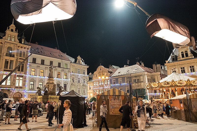 The main square of the city of Liberec stood in for Prague’s famous Old Square. Tents, booth, lights, vignettes, the fair equipment...