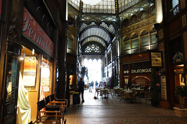 Iconic Paris comes alive for Susan the next day when she follows someone into a classic courtyard complete with sidewalk cafes and beautiful people. Berry reveals, “This was shot inside an historic covered-mall area in Budapest, which was over one hundred years old…the tiles on the floor and walls were custom made by Villory & Boch. Each of the 15 shop fronts in this space were defined by the art department and dressed by my team to fit the necessary action of the scene.” This was followed by an outdoor concert staged on the banks of the Seine.