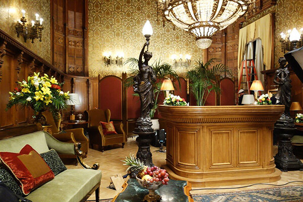 “I also had wonderful support from Assistant Set Decorator Adam Polgar. His family has been dealing in antiques for many years, so he was a font of local resources and crew suggestions. And my shopper, Nimrod Hajdu, whom I shared with the art department, dealt with finding samples, ordering materials and monitoring progress made by each independent shop. I had my own draftsperson to specify drawings for the reception desk, oak bar and back-bars, and all the gaming tables in the casino. I used independent wood workers, metal workers, drapery people and upholsterers, as well as painters for elements in each set.”