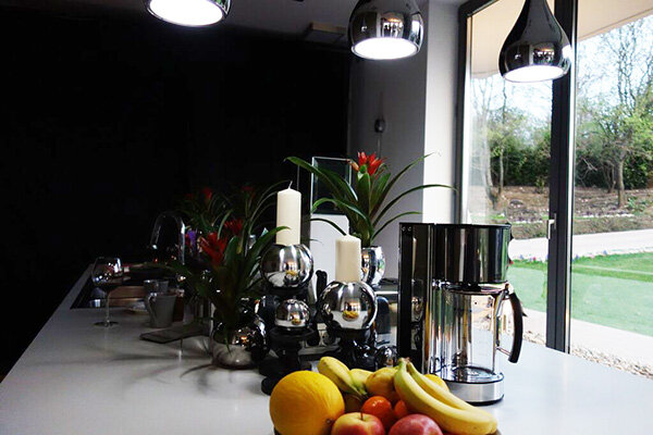 For the kitchen lighting and dressing details, we incorporated rounded reflective chrome elements to distort details of what Susan was able to see revealed through Bradley’s contact lens camera.”