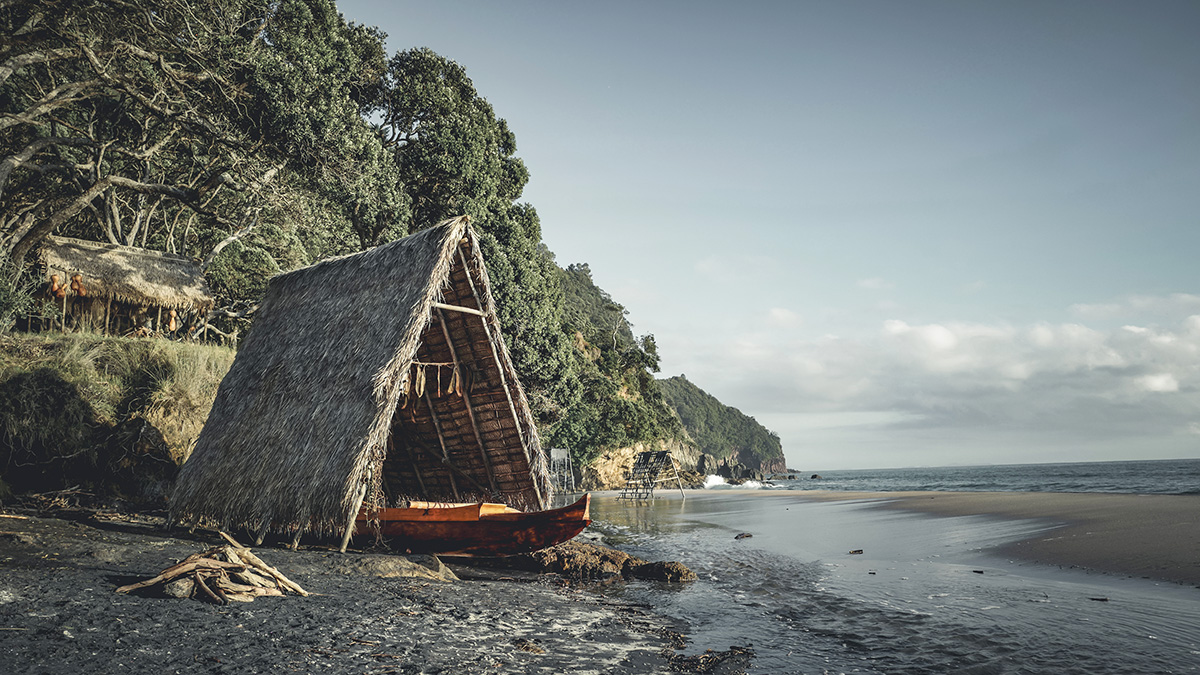 JF: “We basically use one set as almost like a geopolitical landmark for each island, which was very character driven, and that gave us the direction for each. Because the huts are most of the time created of similar material, we really exploited the open gable of the hut structure. We could utilize different designs and get more graphic within that structure."