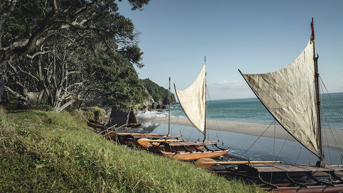 Inter-island travel and sea fishing is possible with these sled-style canoes, which were created in the traditional method with traditional materials. Courtesy of Apple TV+
