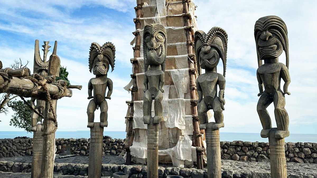 “If you look at the Kualoa temple, the Ku God, for example, we actually sent an ancient tree trunk from Hawaii for them to carve.”
