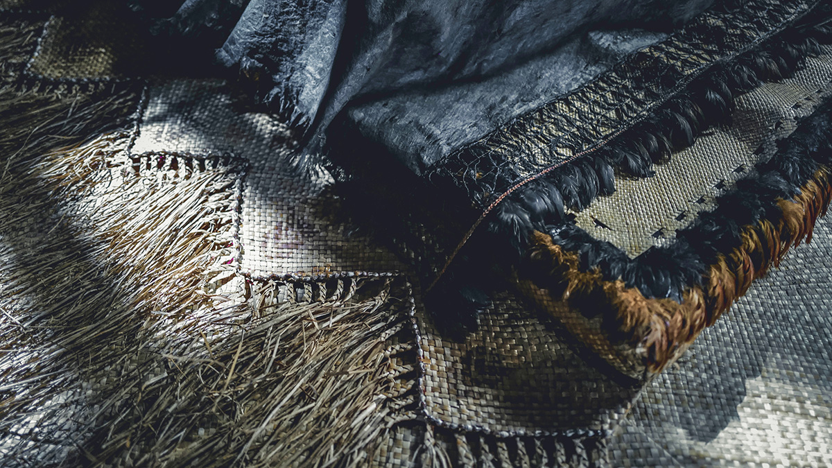 King Kalani’opu'u Funeral Mat: The king’s shroud is wrapped in black-dyed kapa cloth and placed in the center of the mat. Courtesy of Apple TV+