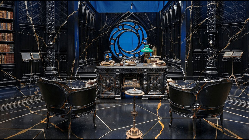 Asteroi, The Citadel at the End of Time...Kasra notes, “Claudia found an unbelievable collection of like, time related, and sort of mysticism related, obscure, and like beautiful, super unique, strange items from all over the world and different cultures and really brought like a mysterious and elegant quality to the to the scene.”