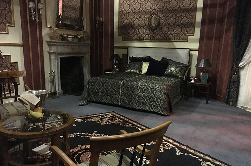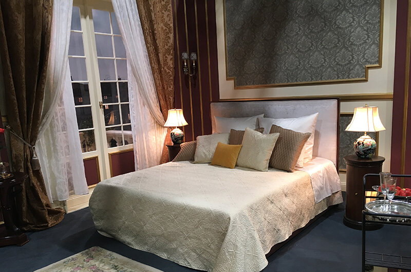 We then built the Honeymoon Suite for Nomi and Amanita, and all the other Sense8s’Paris hotel rooms on the Berlin stages. For this we built two sets, with interchangeable wall panels and dressing all on one stage, Over a day and a half, the filming crew came in, shot a bedroom or two, then went away, whilst we turned the set around and re-dressed it. These were the last two days of the shoot, and there was a great end-of-term atmosphere. Everything was kept on the stage for easy access and by the time we dressed the last room, it had the feeling of some bizarre game show: stop watches ready, GO! Furniture, smalls, mirrors down, drapes out, deep breath, furniture, smalls, mirrors up, drapes in and up, close the door...Finish!