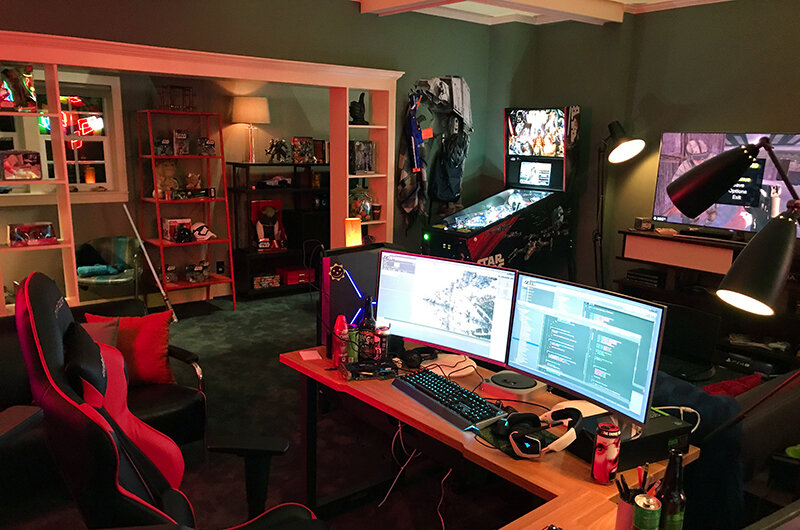 We made sure to accurately show what a real coder’s desk looks like. For instance, they code with their monitor vertical, they need really good coffee, and they have personal items on their desks, like photos of their family or pets, their favorite game characters, a ton of snacks, cords, hard drives, plants, special mouse and mouse pad, post-it notes, energy drinks, and the list goes on. It is their tiny personal space that they spend more time in than at home, so we made sure that for each desk, we sat and thought about who that person is and added the layers to speak of that character.