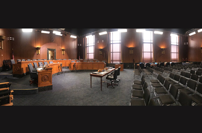 “We very early on researched the different Senate hearing rooms, and we went with research from the Kavanaugh Senate confirmation for the Supreme Court for our stage build at Silvercup East Studios...”