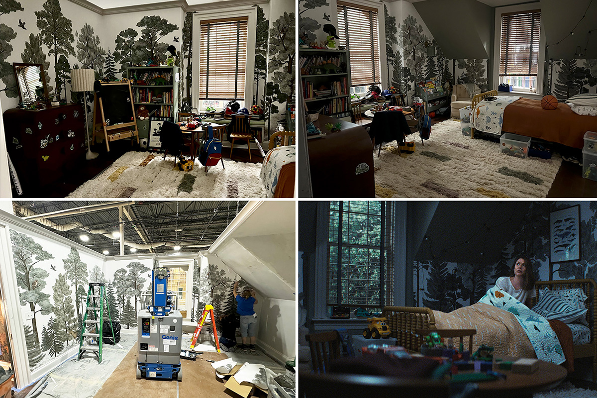 “Aggie’s son’s bedroom was a perfect time capsule of a very loved and missed young son, and I think the layers and character development of his interests really played into Aggie’s sorrow the night we see her and Nile drunkenly bond there.” All photos courtesy of Netflix. Inset bottom right: Grieving mother Aggie Wiggs [Claire Danes] awakens in her son’s bed. Cr. Courtesy of Netflix © 2025.