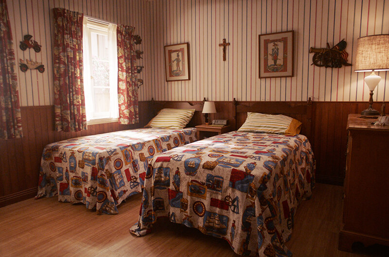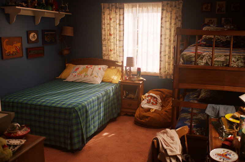 “The bunk-beds boys’ bedroom in the location house had a full-sized mural we couldn’t paint over so Michael built a false wall to cover that.”