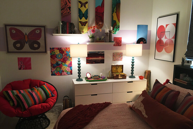 The house that was chosen for Alana’s bedroom had a number of other rooms that we were asked to dress as other characters’ bedrooms, additionally. These were for a musical montage, so we approached them like vignettes. Beth pretty much turned me loose to figure them out, with her blessing. My set dec team came through once again, as of course, this was just as we had huge other sets going. Lauren led the charge on these teen bedrooms, choosing a palette for each character and pulling out whatever we knew about them to create a unique environment, which allowed me to be able to put more focus on the high school and other big sets, and we brought it all together in time!