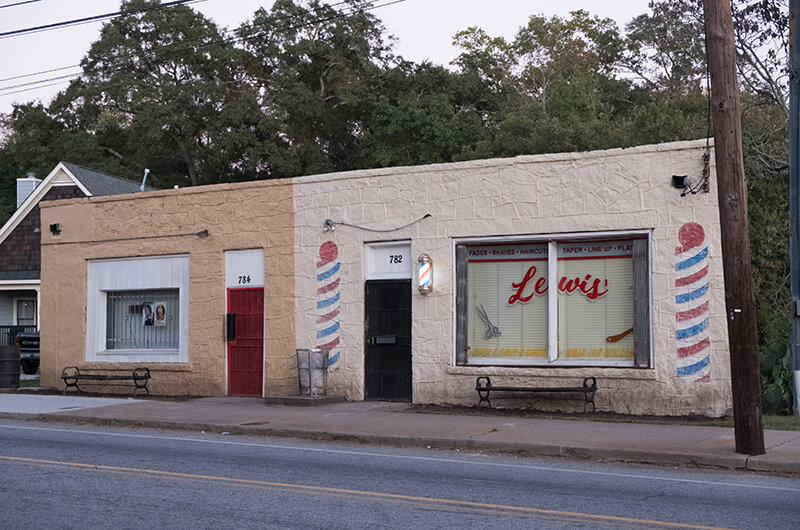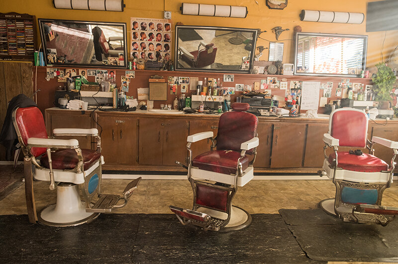 Galline: I reached back to my childhood for this one. My barbershop only had two chairs but it was full of local color photos of kids, ads, all the product on the counter. Hot foam for the cleanup. Being that Mr. Lewis was an older man, I tried to make his shop dated, full of history, family and believable.