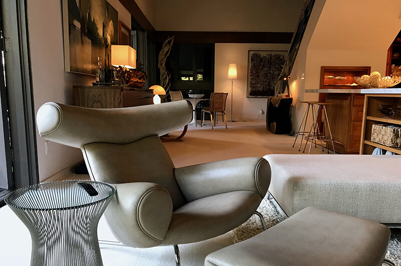 “With the location as anchor, I dove into the idea of her parents having an appreciation for the arts and midcentury architecture and design, which lead me to weave midcentury furnishings with an eclectic mix of pieces from the ‘70s and ‘80s, echoing a beachy redwood color theme unique to Santa Cruz.