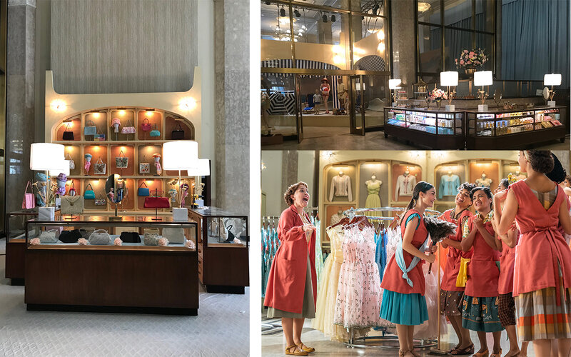 Gimbel’s Department Store... Adding the element of María as a working woman, a late-night cleaning woman in the famed department store. Shot at a practical location, a huge former bank, Set Decorator Rena DeAngelo SDSA fully dressed the area with specialty vignettes and shelving and vitrines of women’s wear, a full bridal salon and cosmetics department, using draperies to close off other areas while still creating depth of the store. Images courtesy of 20th Century Studios ©2021. All Rights Reserved.