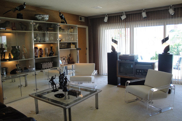 Munch Cameron remembers, “Looking at all the original pictures, I kept thinking, ‘Why is this furniture so little?’ He had tons of little pieces. It’s because he would buy something that could fit in the elevator! Otherwise he would have to hire a crane to get it up on the deck, which is what we did. In fact, we had a crane for two days. Can you imagine, the neighbors…walking their dog or trying to get to their garage, and the alleyway is blocked off because we’re craning up this jewel-encrusted grand piano! But there was no other way to get stuff up there, the camera included. They tried to put it in the elevator and the elevator wouldn’t even go up, consequently they had to repair the elevator a few times. But we actually had very, very little L&D, and nothing big was damaged.”