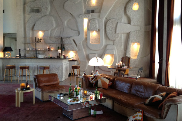 “We had the pool emptied so piano keys could be painted around the edge and the logo on the bottom,” reveals Munch Cameron. “Howard had a wall built, and we added greenery to hide the views of Capitol Records and Hollywood below…after all, this was supposed to be his home in Las Vegas! The living room became gold and silver wallpaper, and we filled the house with new draperies.” After filming, Prince Frederic did not require anything to be restored. “He said he loved it all, and we loved him for that,” she smiles.