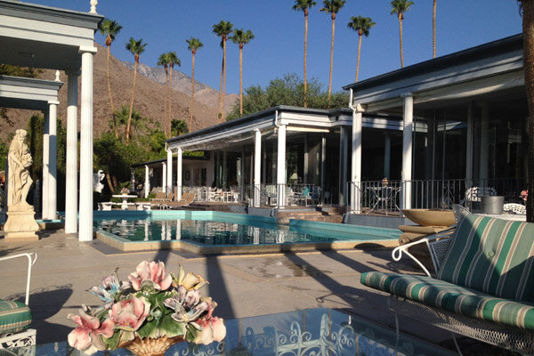 Pianos also appear in the two Palm Springs houses. Although we only see a glimpse, the living rooms in both houses were fully dressed and included pianos, a white one in his mother’s house and burnished wood in his last home, The Cloisters.