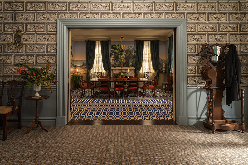 The Emily Dickinson Museum shared their archives with us and Harvard, which owns the rights to the family portraits, allowed us to re-create them, substituting our actor's faces. From a decorative arts standpoint, though, the Emily Dickinson Museum, in 2018, was a mostly blank slate.