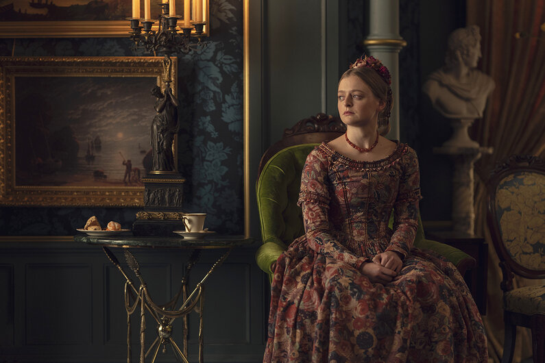 The tone for Season 2, as Showrunner Alena Smith describe, was darker and sexier than the freshman season. In re-creating a version of The Evergreens for DICKINSON, we leaned into exhibitionism, showy collections of art, statues, crystal, marble, gilded finishes and rich, silky fabrics. Accomplishing that on a budget was a real puzzle, but I’m happy with the problem-solving we did, and the end result!