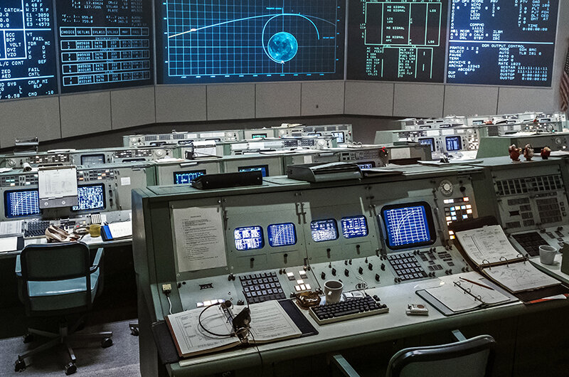 “The controls on the consoles were retrofitted to match the specific flight controllers’ stations for the Apollo flights. We used iPads for the monitors on the consoles, then we had the bezels and the curved screens vacuum formed out of plastic to make the screens look like they were CRT monitors circa 1969.”