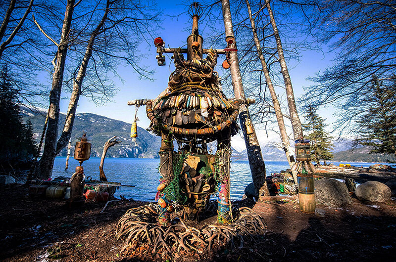 Note the carved poles designating that he is chieftain of the tribe, and the beautiful, artful lashing of ropes...