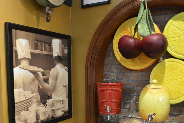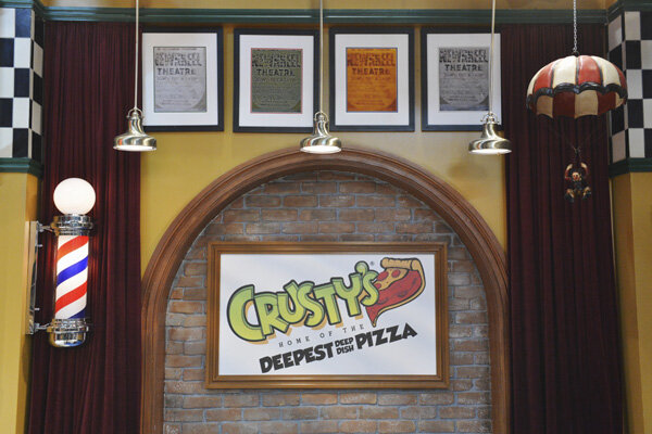 Growing children can affect a set as well. In fact, Goodall keeps a growth chart of sorts near his office doorway…a life-size poster cutout of the young Davis Cleveland, with increasing height measurements. “When you start out with little kids, you see stuff you don’t usually see otherwise…a lot of the floor, the coffee table, more end tables…you see stuff that’s lower, like under the counters of the kitchen.” The usual sitcom will have a shoulder/head sightline for camera that is fully dressed for tight shots. “I have a broader range of what has to be dressed. It’s from knee to head…2 ½ feet to 7 ft. And since at some point in almost every episode we’ll hear Davis say the line, ‘I’ll get it, Mom!’, and Flynn then answers the door, the set dressing in the entry area has continually changed as he’s grown.”