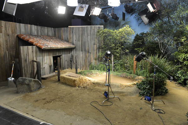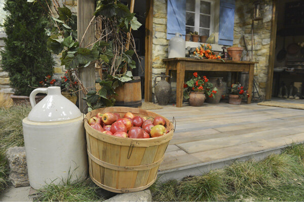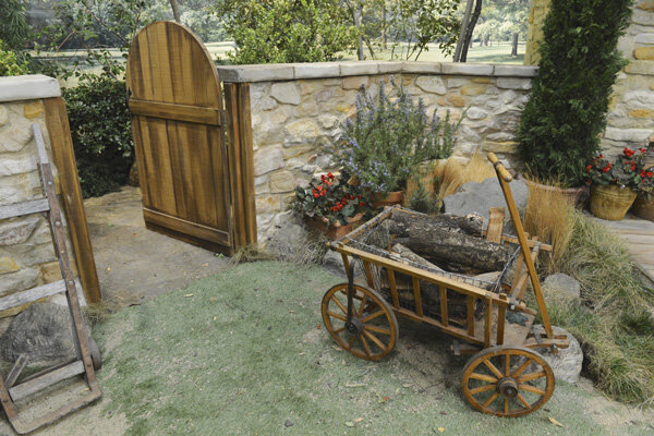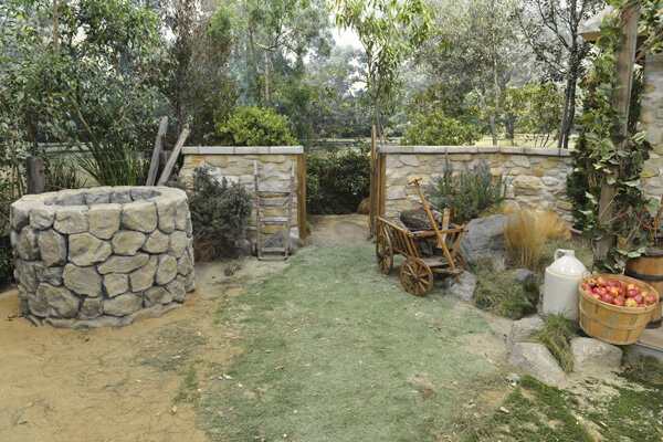 “Sometimes the script will go into great detail. With this episode, I think it just said that there was a French farmhouse with a well and that the house was upstage and a table downstage. The notes that I got were that the writers wanted the arbor heavily dressed with vines, and that there had to be a gate and a pig and some ducks. And a pig pen.”