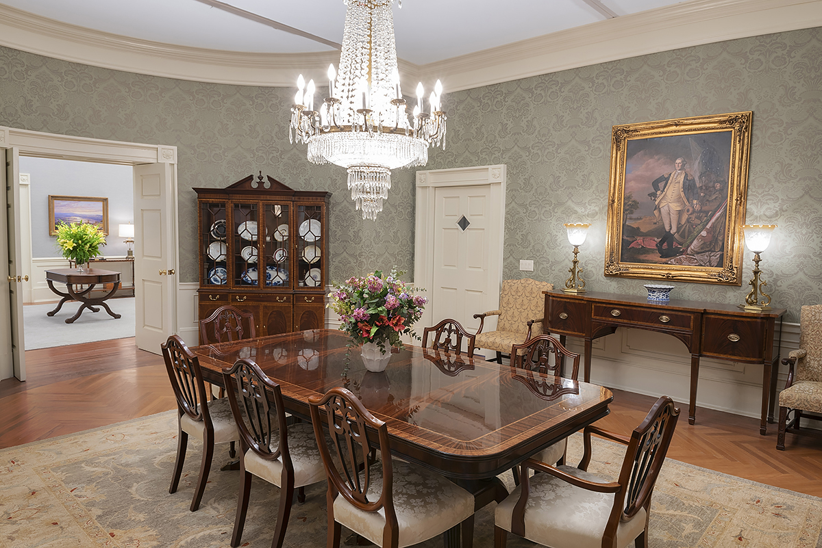 White House Residence. Dining Room. Note the florals. Photo: Greg Leshé Studio.