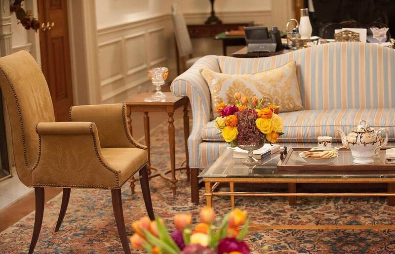 I love having flowers around the White House sets because it shows a bit of grandness and gives pops of color. I keep tulips for Sue's desk, and seasonal arrangements throughout the West Wing and residence.