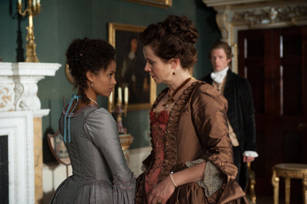 Asante: Yes! I wanted the mirror reflection, and I wanted Lord Mansfield in that reflection as well. It was exactly as you’ve described, Lady Mansfield, her reflection and the reality. Lady Mansfield is a dual kind of personality in the sense that she’s a woman of her time, to a certain extent, with the stereotype of the man being the head of the house and the woman takes care of the household. Yet, Dido couldn’t have lived in that family in the way that she did, dressed in silks and jewelry and being educated in the way that she was, without Lady Mansfield’s agreement.