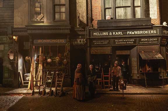 Nalluri: Well that again was the art department knowing and making magic of it. We tracked how many characters were going to be in there, what they should be doing, how we could keep them alive, how we could give them their own little world in the corner, and then it was working out how to achieve those spaces within a space in order to give all of these characters their own world, and yet have Dickens be right in the middle of it, being interrupted and kind of harangued by them all. So, for example, the windows seats were specifically done like that so you could have a little world in there...