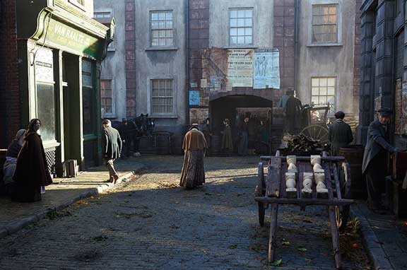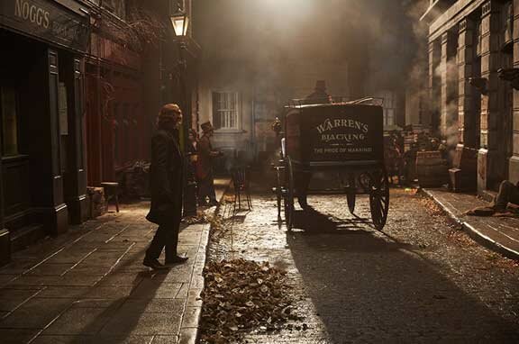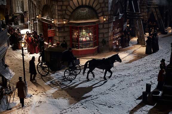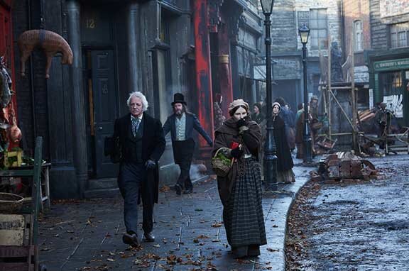 That’s why one thing I required was that everyone had to read A CHRISTMAS CAROL three times over and kind of bury it in his or her head. I also said, “Everything Dickens sees around him, we should reference somehow or other, somewhere. The audience, whether consciously or sub-consciously, should know that it’s something he’s seen, and that’s why it’s in A CHRISTMAS CAROL. You know, whether it’s the tiles on the fireplace, which have a very specific part in the book, and they designed those tiles and had them made. Or whether it’s the cherry-red apple that he talks about in the marketplace, in the book. It was all down to the minutiae of the book. But I think that’s another reason why it feels quite whole. People know that book better than they think, even, because I think it’s been part of our culture for so long that it’s just embedded in people’s subconscious. And we were very keen to make sure we didn’t let people down.
