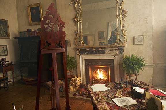 SET DECOR: From famous men to a famous man, the illustrator John Leech’s studio, with it’s dramatic draping...