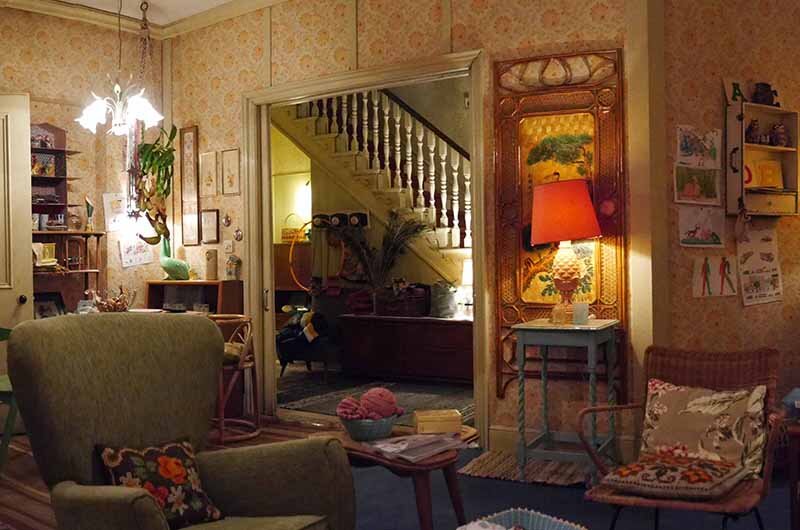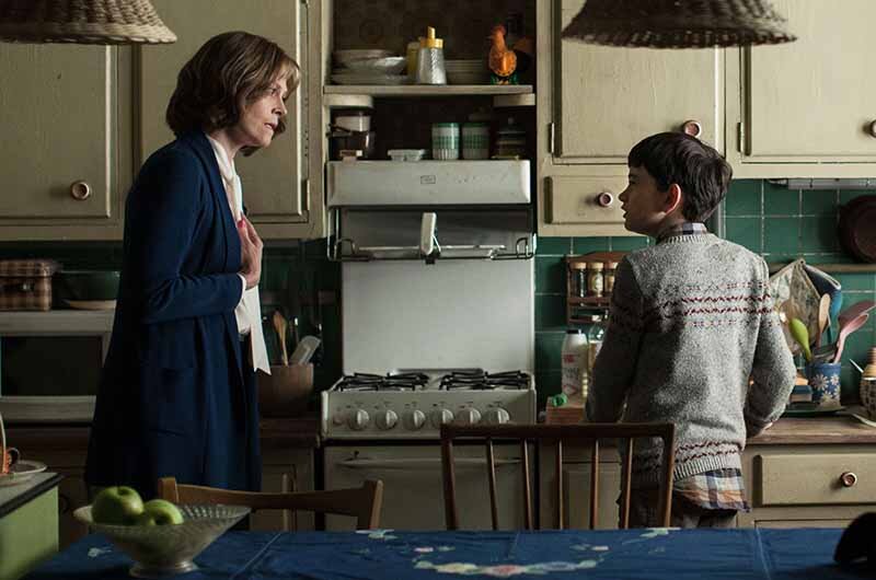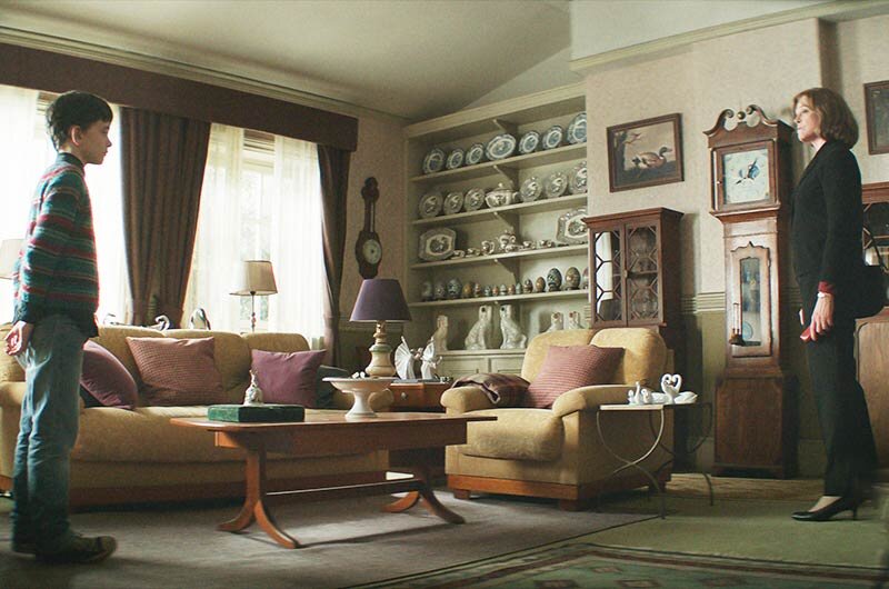 SET DECOR: You have references to those films, which Conor and his mother loved, sprinkled throughout: character dolls, some of his black and white drawings, even the harsh, eerie lighting from the fallen, crushed lamps in his grandmother’s living room after the destruction.