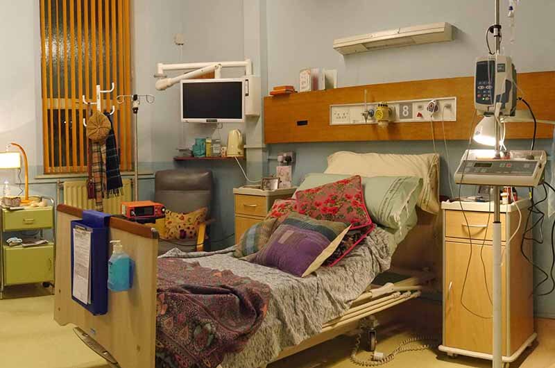 SET DECOR: The beautiful pillows Conor’s mother had surrounding her offered a rich background palette in the scenes at home, but in her hospital room, against the white bed and as she’s fading away, the colors seem to really intensify. Was that purposeful, intended?