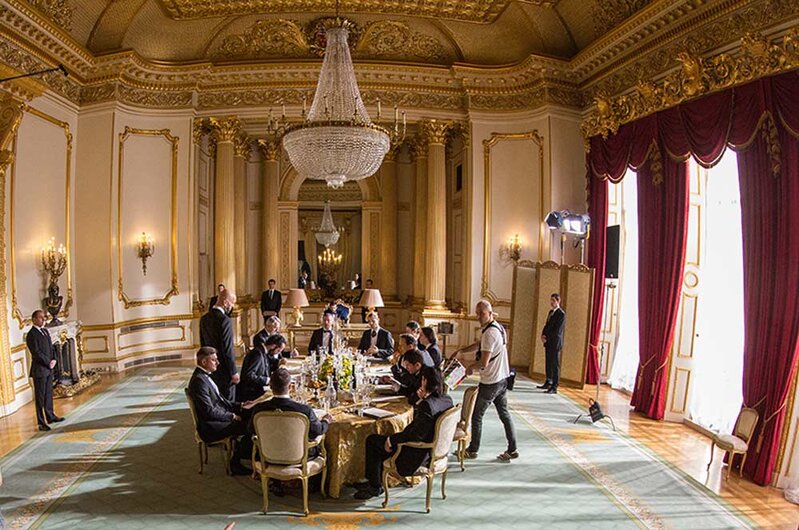 And the other one that really took my breath away was the opening… that gilded huge signing in Russia that we filmed in the UK. When I walked in there, I was amazed, because they’d taken a space that was a kind of stuffy London space and just transformed it into Russia. And that’s so exciting to see.