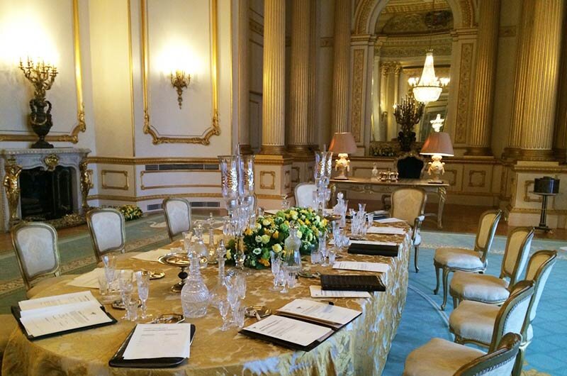 SET DECOR: A perfect contrast to the signing scene in Russia in style, and yet they’re both exuding power and wealth.