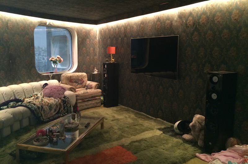 SW: We fell in love with it driving around on a scout. We were taken to look at places that were much more generic, and I think Sarah and I spotted it at the same moment, these round towers with multi-colored camo on them—they’re like camouflage-print apartment blocks. They’re extraordinary, like somebody had an idea in a very French way that you could make housing projects a work of art and it would improve people’s lives by living in them. But, actually, sadly, the lives of those people living there were not great. We went to scout an apartment, to use as our reference for what we would build, and when we looked out the window, there was like a crystal meth factory in the next apartment. So we constructed our version in London!