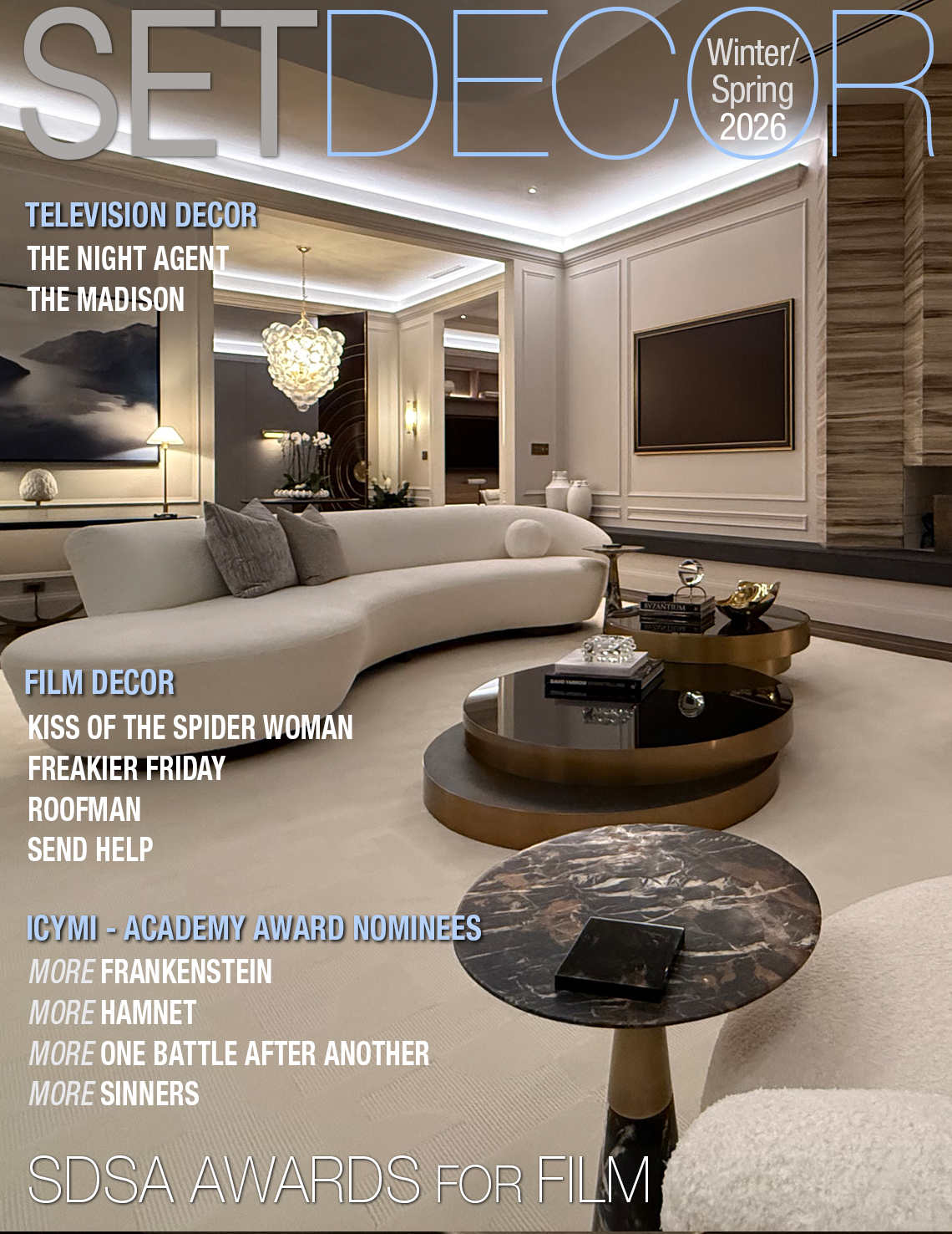 Television Decor THE NIGHT AGENT THE MADISON Film Decor KISS OF THE SPIDERWOMAN FREAKIER FRIDAY ROOFMAN SEND HELP ICYMI-Academy Award Nominees ...more from FRANKENSTEIN ...more HAMNET ...more about ONE BATTLE AFTER ANOTHER ...more of SINNERS Awards SDSA AWARDS FOR FILM 2025